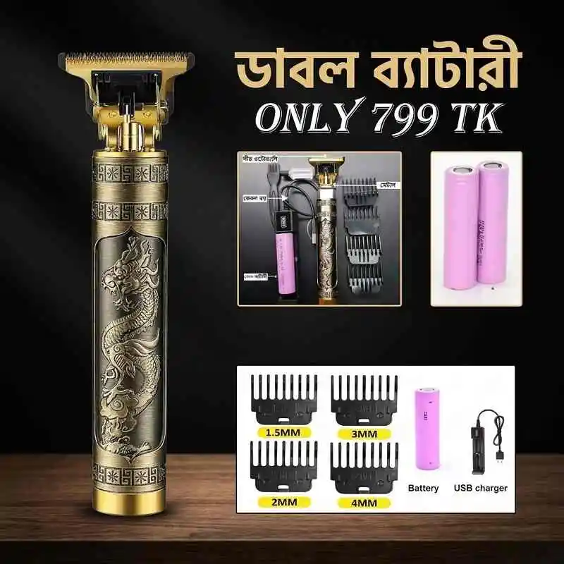 T9 Vintage Electric Hair Trimmer হোম ইউজ, বারবার শেভিং, সেলুন কাজ এবং পার্সোনাল গ্রুমিংয়ের জন্য একটি আদর্শ পছন্দ। এর শক্তিশালী মোটর, লং ব্যাটারি লাইফ, USB চার্জিং এবং সেফ ব্লেড ডিজাইন এটিকে বাজারের সেরা ট্রিমারগুলোর মধ্যে একটি করে তুলেছে।